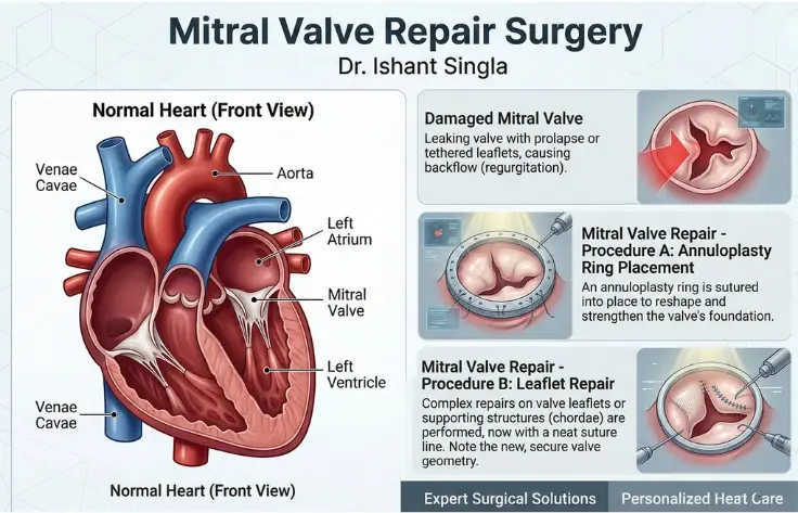 The procedural technique utilized by Dr. Ishant Singla represents the absolute pinnacle of modern cardiovascular intervention. What happens during a minimally invasive mitral valve surgery is a marvel of advanced medical engineering. During the operation, the cardiac surgeon makes a tiny two inch incision along your ribs on one side of your chest.